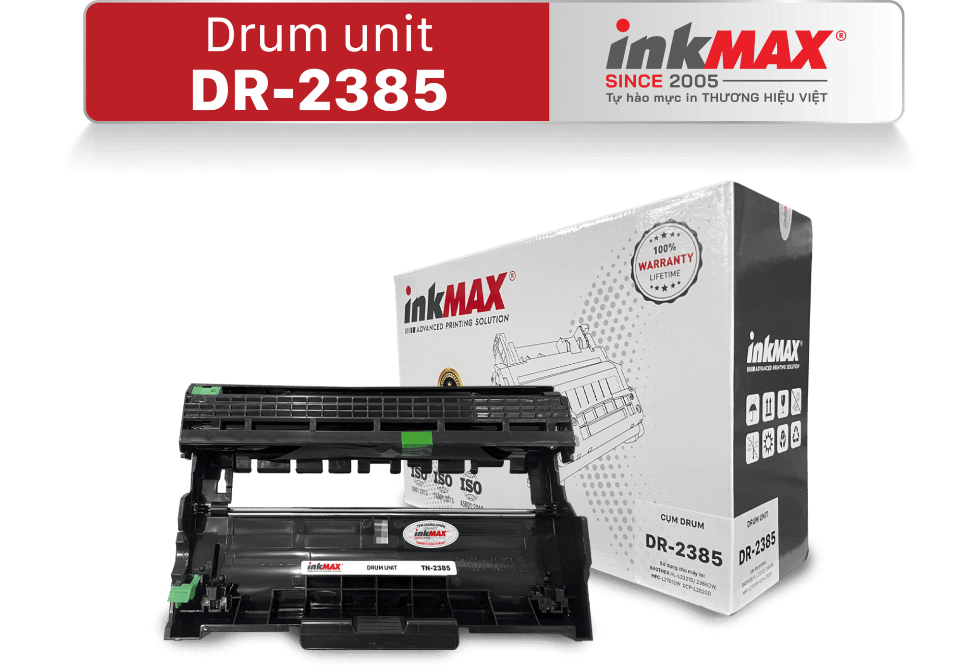 Với dòng sản phẩm Cụm trống inkMAX DR-2385 sử dụng cho dòng máy in Brother và sự cải tiến mới về chất lượng, sản phẩm này chắc chắn là lựa chọn hoàn hảo cho doanh nghiệp của bạn.