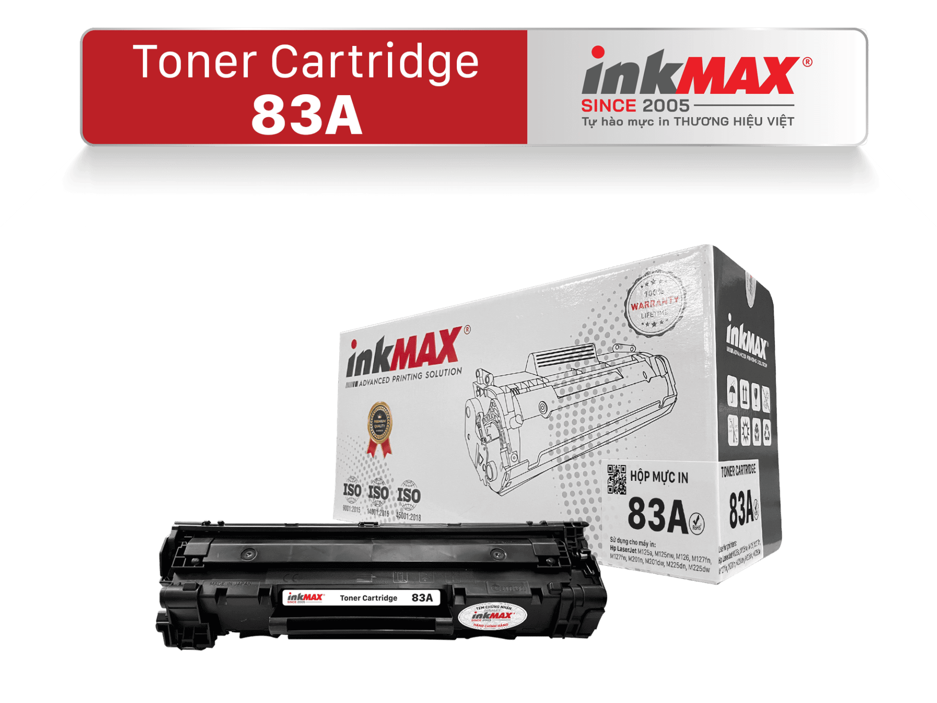 Mực in tương thích inkMAX 83A dùng cho máy HP LaserJet M125A/M125NW/M126/M127FN/M127FW/M201N/M201DW/M225DN/M225DW