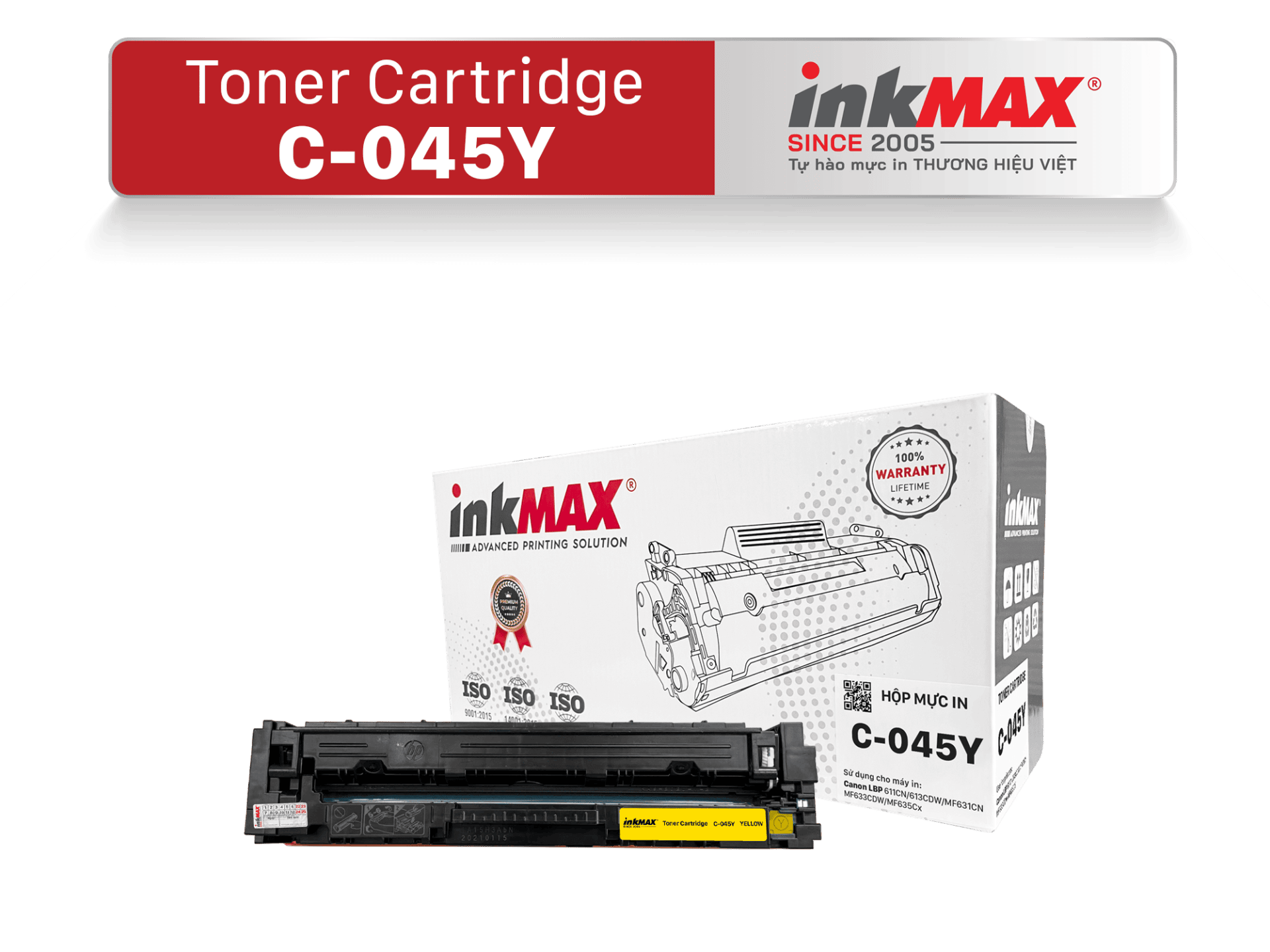 được sản xuất theo tiêu chuẩn kỹ thuật của chính hãng. Bản in ra có đẹp hay không phần lớn chủ yếu là do hộp mực vì vậy inkMAX sản xuất ra dòng sản phẩm hộp mực C-045Y để đáp ứng nhu cầu của khách hàng với chất lượng cao, trang in sắc nét, độ bền mực cao. Mực in tương thích đạt đến mức độ hoàn hảo với máy in như mực chính hãng giúp máy in của bạn vận hành ổn định, không hư hại linh kiện,hạn chế việc kẹt giấy trong quá trình bạn sử dụng, giúp máy duy trì tuổi thọ cao.